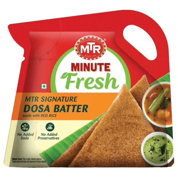 MTR-Signature Dosa Minute Fresh is made with nutritious red rice to provide you with the delightful taste of dosa – crispy outside, soft inside! Prepared with the highest quality ingredients, from a recipe made by our famed chefs and packaged in an ergonomically designed ConviPack with ConviHandle and EasyPour spout, this is the perfect combination of authentic taste, convenience and good health!